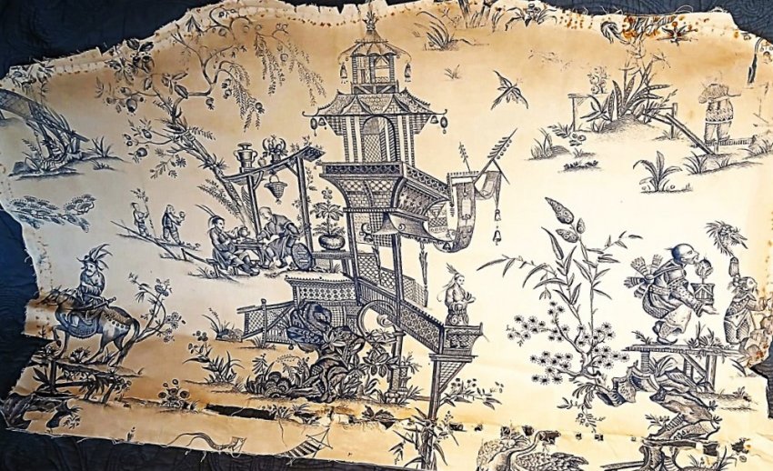 La précision des motifs et leur originalité font de cette pièce de tissu un objet de musée représentatif de la qualité des tissus sortis de la Manufacture d'Oberkampf à Jouy en Josas à la fin du XVIII ième siècle (confirmation donnée par le Musée de la Toile de Jouy).